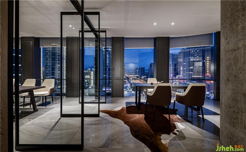 當(dāng)設(shè)計團(tuán)隊進(jìn)行空間創(chuàng)作的構(gòu)想,為了及時地與伙伴交流互換,碰撞不同的思想,探討關(guān)于生活的無限可能性,幕墻就成為了盛放意識的容器。會議室增強(qiáng)了白色玻璃幕墻的信息輻射作用,達(dá)到思想交互的開放式創(chuàng)作。