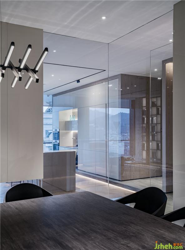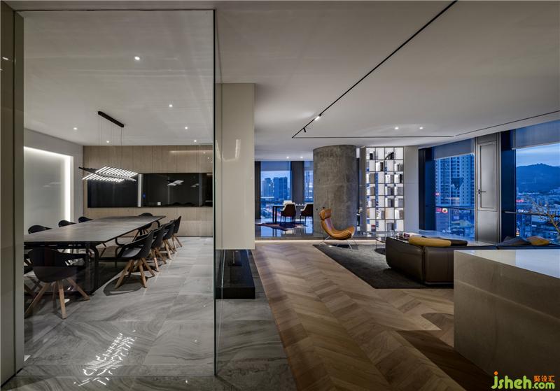 工作室的燈光經(jīng)過精心設(shè)計(jì)及布置,呈現(xiàn)柔和、親切的氛圍感。也為陰天而設(shè)計(jì),用來調(diào)節(jié)陰雨天氣帶來的灰暗情緒。所有獨(dú)立辦公室天花未做繁雜的燈具,僅靠孔燈來解決照明,創(chuàng)造最柔和的環(huán)境光,即使長時(shí)間工作也不致視覺疲勞。空間氛圍跟著自然光線的變化持續(xù),保持某種思想持續(xù)沉浸的狀態(tài)。
