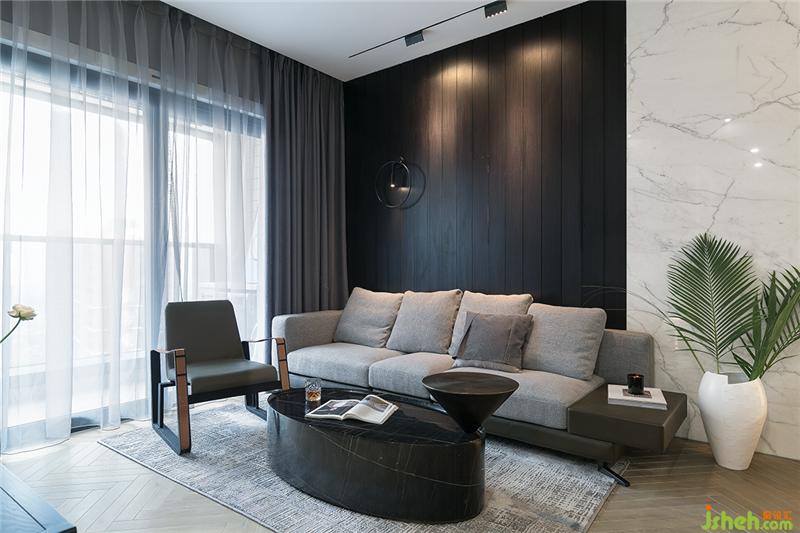 空間使用棉麻、勞倫黑金、真皮、木飾面這些豐富的材質(zhì),色彩歸納于黑白灰的基調(diào)中,讓空間統(tǒng)一又富有變化。裝修公司