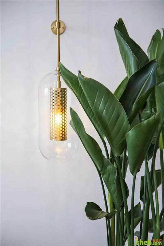 迷人的小細(xì)節(jié)壁燈光源提亮空間,局部的黃光點(diǎn)綴也使空間更加的溫馨,金屬與綠植的體材對(duì)比是空間更有趣味和生機(jī)。室內(nèi)設(shè)計(jì)師