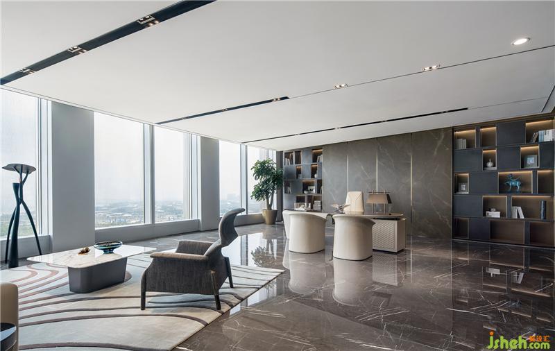可容納16個人的會議室,背景以水波紋為元素,與天花板的曲線交相呼應,傳達了思想交流和碰撞的過程。環(huán)保高效的無紙化辦公系統(tǒng)體現(xiàn)出深圳的特質--效率、務實、國際化。會議室和獨立辦公室的隔斷使用霧化玻璃,兩者的獨立和開放可以自由切換。