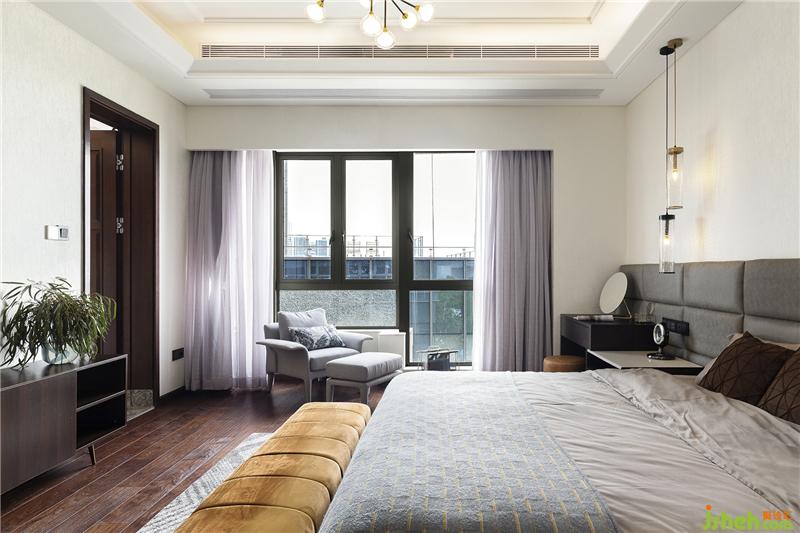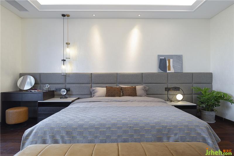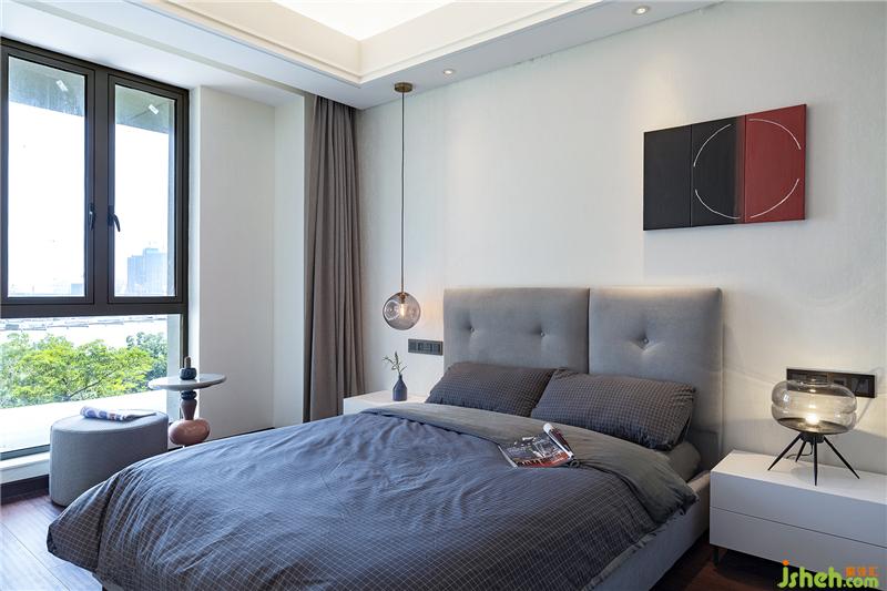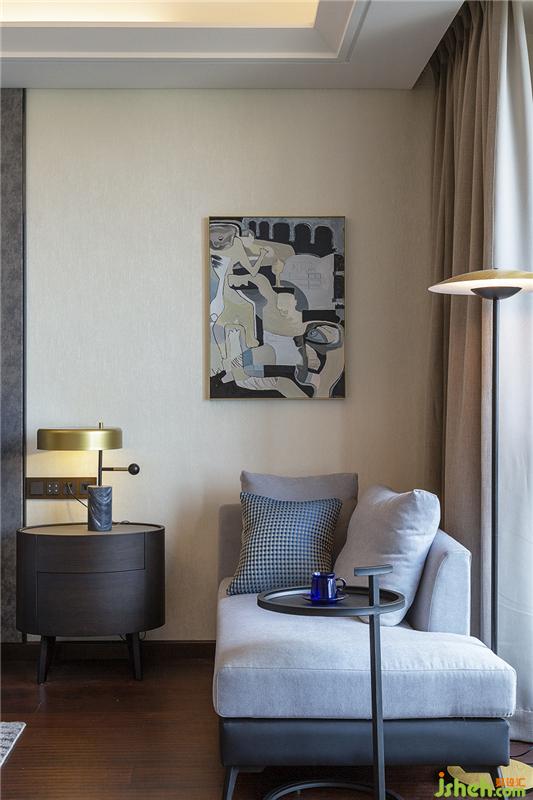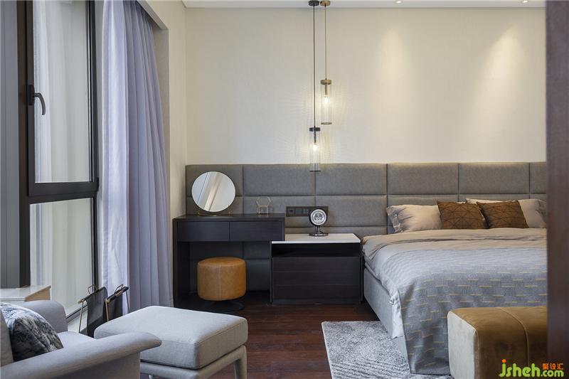 主臥以灰色為主加上姜黃色點(diǎn)亮空間,除基本設(shè)施外,添加休閑沙發(fā)的組合。一本書,一杯咖啡,一片海,一輪落日,滿足你所有的文藝情懷