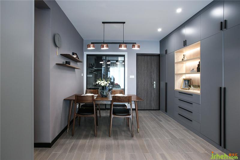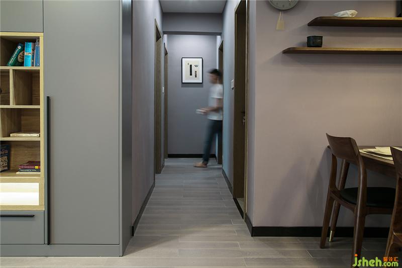 玄關(guān)&鞋柜頂天立地的組合簡(jiǎn)直是收納神器,而且空間利落顯得高大。廚房的門(mén)與餐廳連接的墻打通,做成玻璃推拉門(mén)。