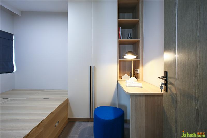 很遺憾的地方原始結(jié)構(gòu)的梁比較低,沒有那么開敞,即使這樣還是放置了一個(gè)小梳妝臺(tái)和衣帽間。
