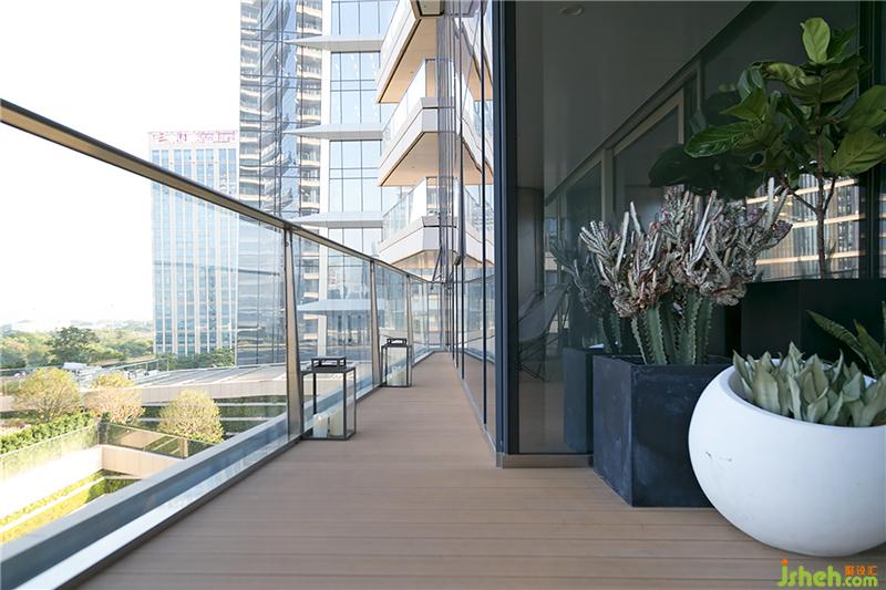陽臺拐角的地方設置一組休閑吧臺吧椅,