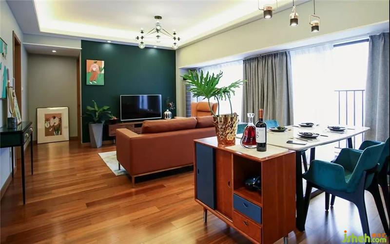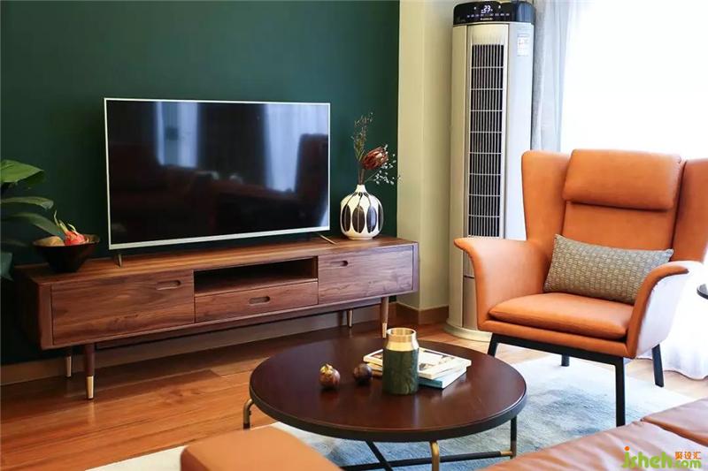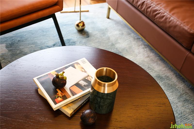 ▲造型復古的焦糖色真皮沙發(fā)與點綴著黃銅的胡桃木茶幾和電視柜慵懶地躺在客廳,它們就像一個電影濾鏡,將時光拉回到七八十年代燈紅酒綠的老上海,看似喧囂,隱匿在表象之下的其實是一份難得的安穩(wěn)與寧靜。室內(nèi)設(shè)計師
