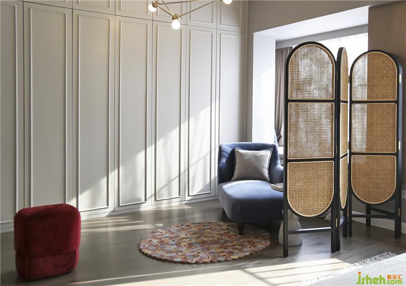 次凈衣→鏡子→梳妝臺(tái)→衣柜,達(dá)成屋主舒適方便的生活秩序。室內(nèi)設(shè)計(jì)師