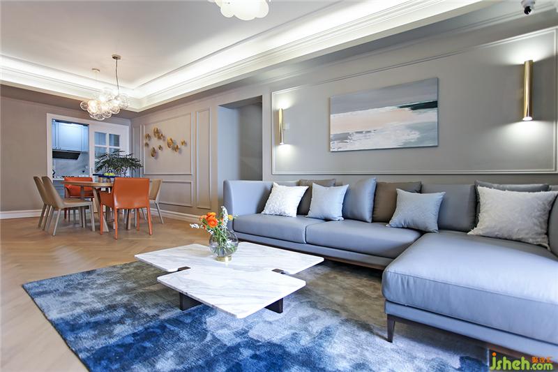深海的蔚藍色點綴,深海包容性強的特質正如客廳,一家人的活動空間和接待朋友的重要場所。
