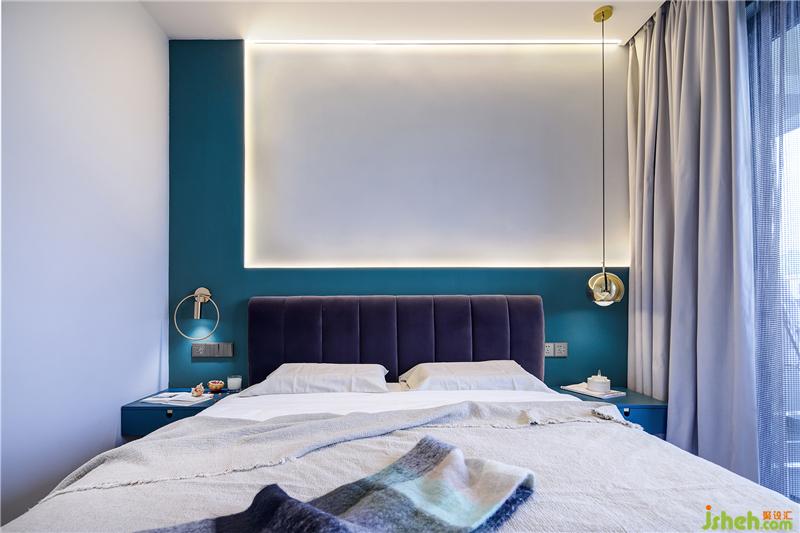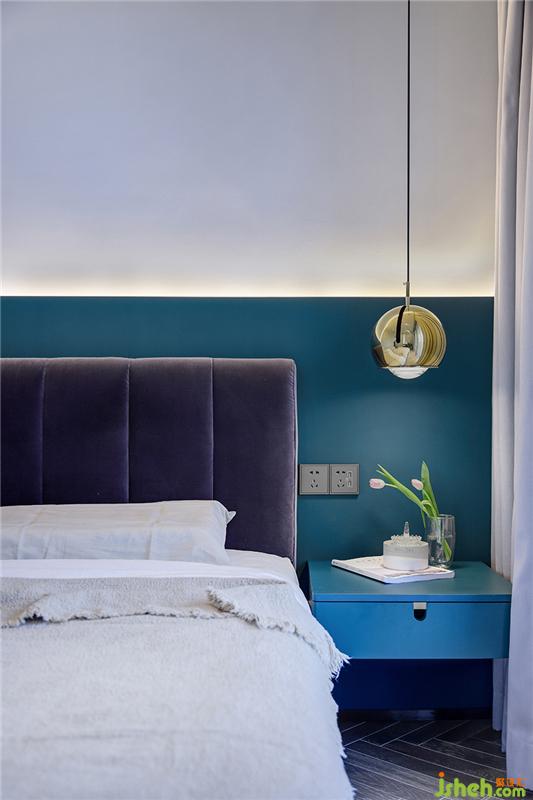 在臥室的色彩關(guān)系處理上,色彩的造型、比例、與燈光的關(guān)系可以讓空間更有層次和氛圍,所有的床頭柜都做了懸掛的安裝方式,便于打掃。室內(nèi)設(shè)計師
