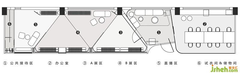 一眼就望的到頭平面結(jié)構(gòu),服裝店設(shè)計多種功能怎么能既獨(dú)立又融合?使用“之”字形的動線導(dǎo)向并通過局部遮擋,給人一步一景的空間體驗(yàn)