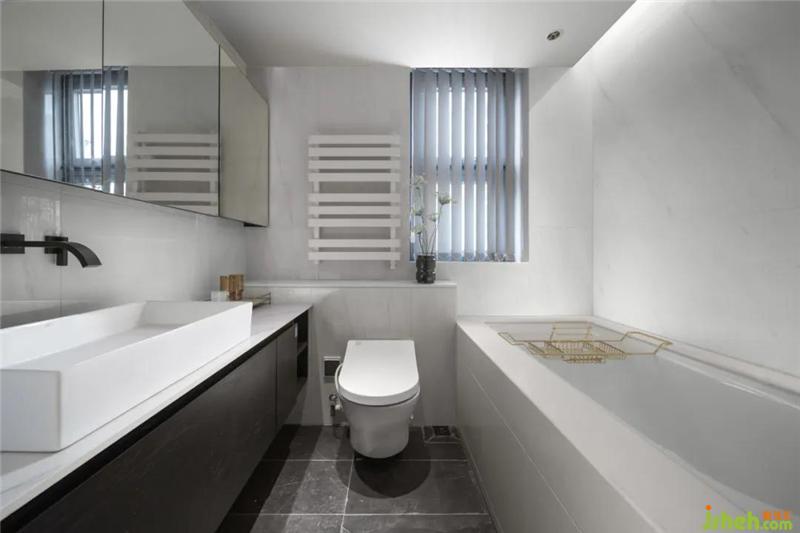 主臥主衛(wèi)的墻面轉(zhuǎn)角設(shè)計成了圓弧形減弱邊界,舒緩?fù)ǖ赖霓D(zhuǎn)折。