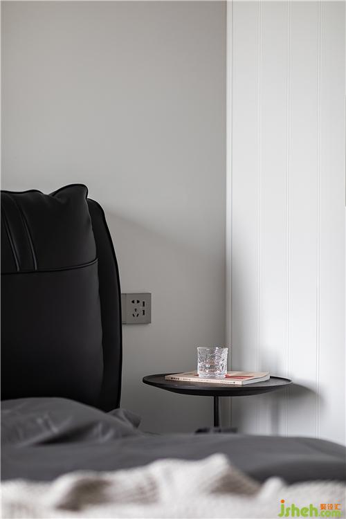 臥室中的色調(diào)與公共空間相呼應(yīng),采用了黑與白,