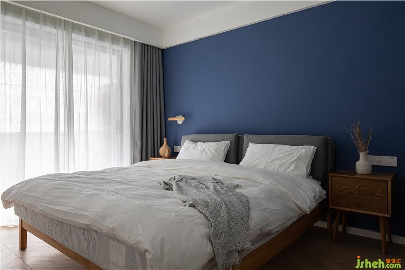 臥室中的色調(diào)與公共空間相呼應(yīng),采用了藍(lán)與白。南京裝修設(shè)計(jì)灰藍(lán)色調(diào)讓嘈雜的生活瞬間安靜下來,帶人走入放松舒適的休憩氛圍。