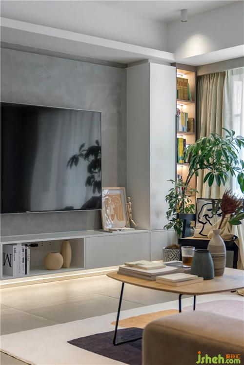 電視柜的一體化設計,既滿足了收納,也滿足了業(yè)主放置樂高展示柜的愿望。一整面的藝術(shù)涂料從玄關處一致延伸至電視墻處,讓視覺得到延伸??蛷d窗臺處設立一個開放書柜,平時坐在窗臺上閱讀充電也是十分便捷,開放的設計也許會難于清掃,但卻能提升閱讀的幾率。(懶人如小編想看書時卻受到了柜門的阻攔可能就直接放棄看書的念頭~