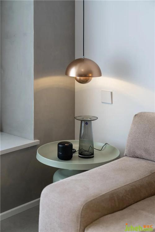 淺駝色的三人位沙發(fā),憨態(tài)可愛,與淺青色的邊幾搭配相得益彰,低飽和的色彩總是耐看些,也不會產(chǎn)生突兀感深圳裝修設計。兩側(cè)使用吊燈+落地燈,不對稱的形式讓生活平添一份趣味。發(fā)現(xiàn)了嗎?藝術(shù)漆將電視區(qū)與沙發(fā)區(qū)連接到了一起哦~