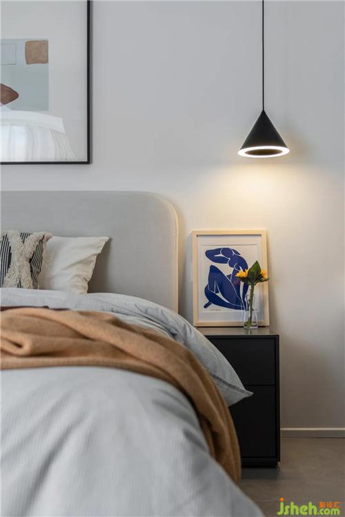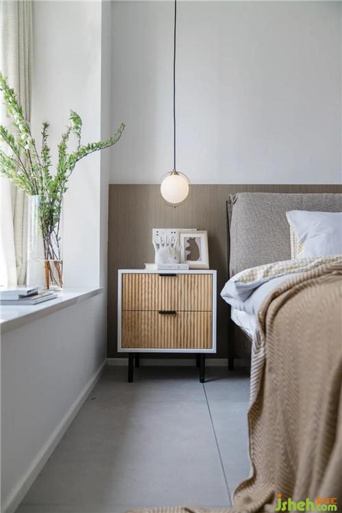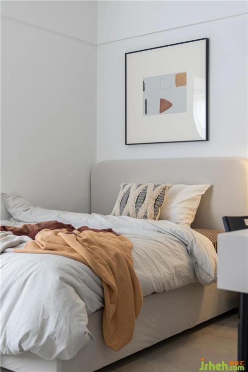次臥除了作為休閑區(qū),還需滿足老人及朋友的偶爾住宿需求,簡(jiǎn)單設(shè)置一個(gè)常規(guī)床+床頭柜即可。深圳裝修設(shè)計(jì)床尾也留了衣柜,滿足存放換季被褥或入住衣物收納的條件。