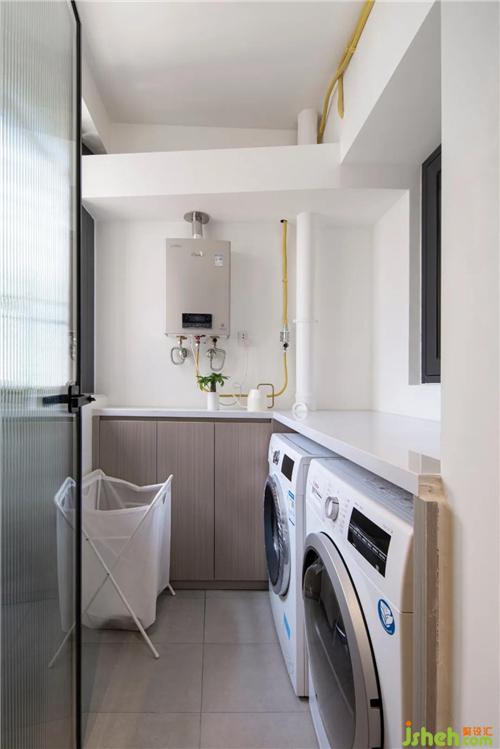 洗衣機(jī)、干衣機(jī)及熱水器等這些“不太美觀”的家電統(tǒng)統(tǒng)“藏”在生活陽(yáng)臺(tái),只給外界展示美的一面,同時(shí)還能余出一部分空間用于收納。給廚房開(kāi)了一扇窗,增加其采光。