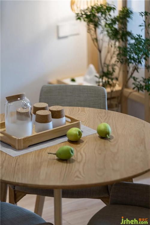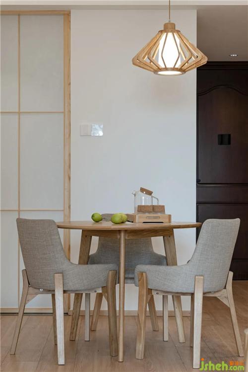 客廳的元素延伸的玄關(guān)和餐廳,木質(zhì)的家私的感覺(jué),讓空間更加純粹自然。