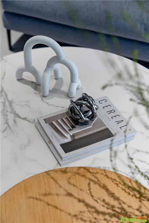 深灰色布藝的沙發(fā)與單人椅在色調上與背景墻巖板相呼應,讓整個空間更加趨于整體化,視感上更覺內斂沉穩(wěn)。高低錯落有致的圓形白色大理石茶幾點亮了這個空間深圳裝修設計,不會顯得過于沉悶,圓圓的小墩更添加了一絲憨厚可愛的氣氛。綠植的存在讓這個區(qū)域瞬間生氣起來~
