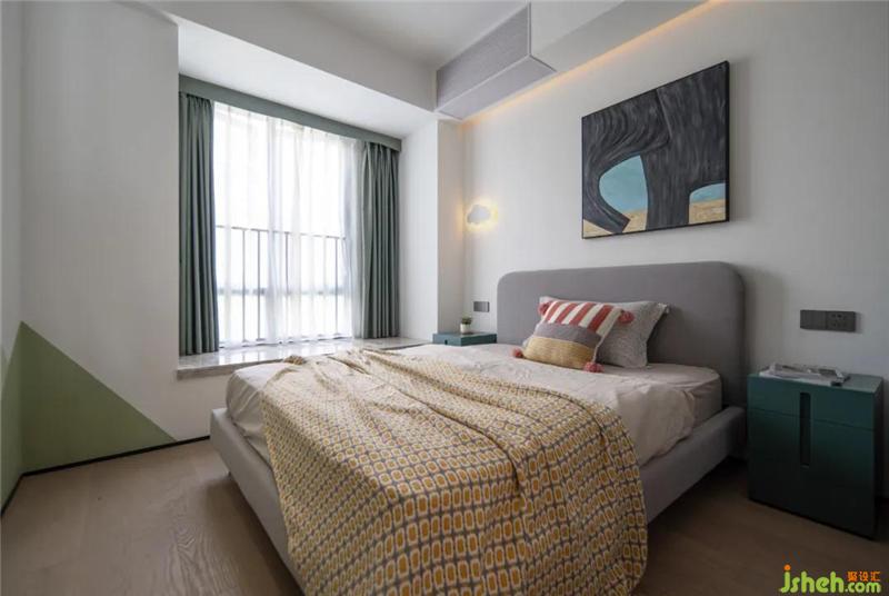 屋主家里目前還沒有小朋友,所以兒童房的設(shè)計(jì)沒有做很多趨于性別化的細(xì)節(jié),云朵燈及大象的裝飾畫充滿童趣深圳裝修設(shè)計(jì),床尾用深淺不一的青綠色點(diǎn)綴也很清新活力,床品選用中性的灰色,以后可以根據(jù)小朋友的喜好更換四件套等軟裝物品,無需動硬裝。