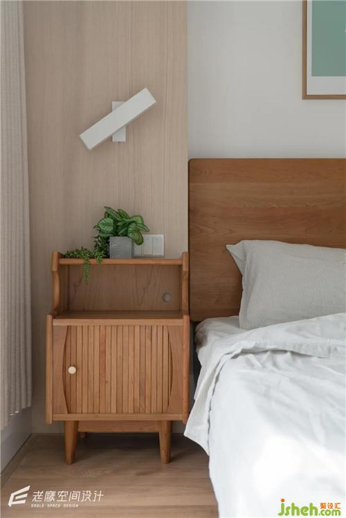 木作床頭柜,可調(diào)節(jié)的閱讀壁燈,臥室一角滿滿的溫馨及舒適感~