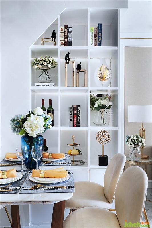 設計師在軟裝飾品的擺放也很考究,飾品的擺放構(gòu)圖三角形,避免呆板,色彩上按6:3:1原則。