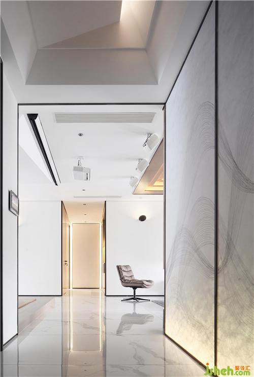 “奕賢居”由電梯廳入戶,拉開雙門看到眼前一幅背景,為一進:“見山是山,見水是水”的意境。