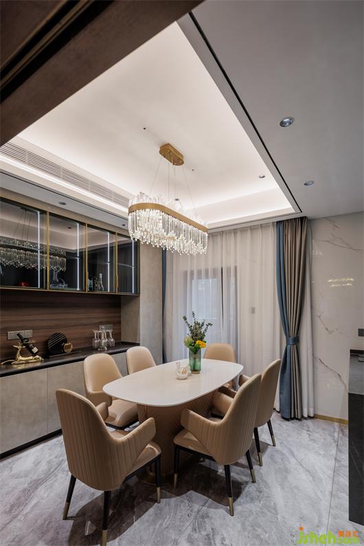 精簡(jiǎn)的線條,飽含奢華感,通過(guò)異材質(zhì)的搭配,石材和金屬材料恰到好處的結(jié)合,讓客廳變得奢華美好,創(chuàng)造出一種更具浪漫、動(dòng)感而又華麗纖細(xì)的裝飾格局。