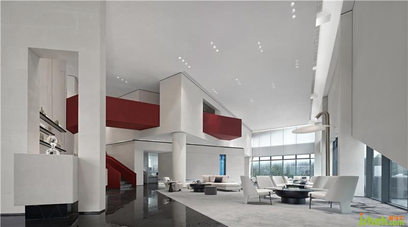 墻體結(jié)合水平方向的橫挑,除了自身的顏色以及自然的肌理,溫暖了空間的色差,捕捉著一天當(dāng)中光影的變化。售樓處裝修設(shè)計平衡了空間中的色彩對比。