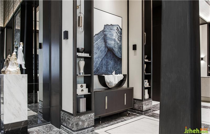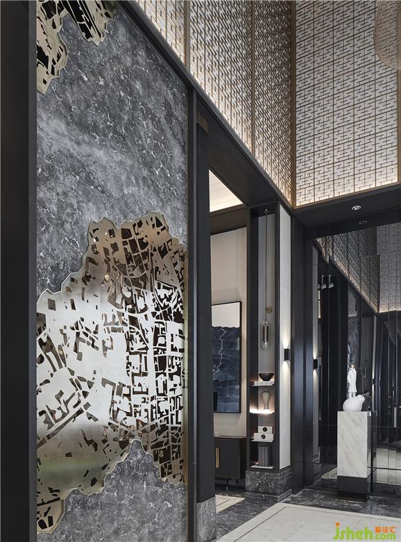 剝離斑駁的大理石,透出破碎金片,用不規(guī)則的線條打造出一種流動(dòng)感,售樓處設(shè)計(jì)打破空間的呆板,寓靜于動(dòng)。