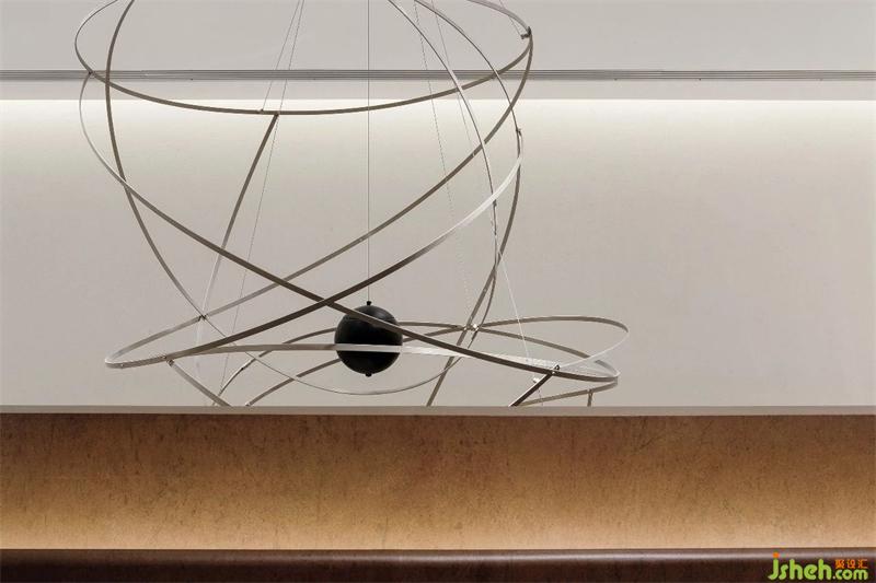 承接硬裝純粹、理性的美學(xué)風(fēng)格,對多元的線條、色彩的升華,表達強烈韻味的活力與激情。前廳接待臺面則是透過門洞的幾何體浮在光影的體積中,配以線條感栩栩靈動的藝術(shù)品點綴。