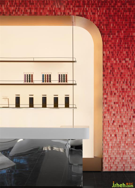 進入室內(nèi),隨著空間氣氛而起伏的優(yōu)雅弧線中,射燈鑲嵌其中,不露聲色地隱匿在頂部上空。拱券結(jié)構(gòu)帶來豐富的層次體驗,如多幕劇戲劇的低調(diào)出演,一幕一幕地表達出空間內(nèi)涵。無論居于空間的哪個位置,均能欣賞到不同樣態(tài)的風(fēng)景。各功能區(qū)既相互獨立,又彼此依存,蜿蜒曲折之間,空間隨之煥發(fā)無限的生命力。