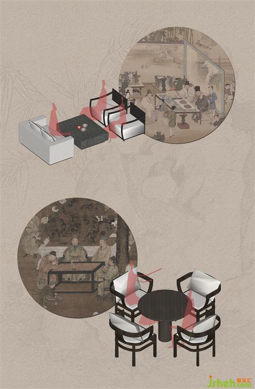 The negotiation area draws on the layout of the "Rifang system" and arranges the functions in an orderly manner, taking the large sandbox area to the negotiation area as the central axis, and distributing other functions to the left and right on both sides, forming a central axis symmetrical plan layout scheme. The space is open to view without screens, and every structure is inclusive.