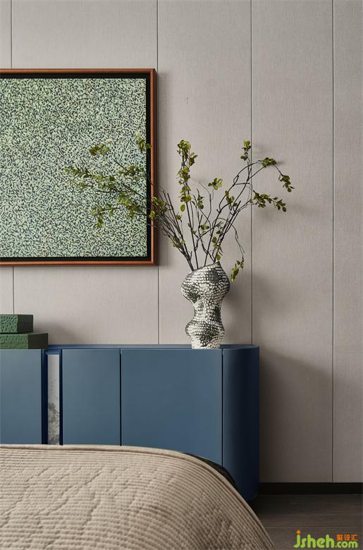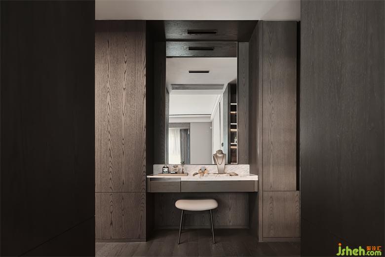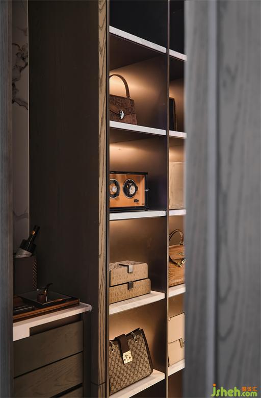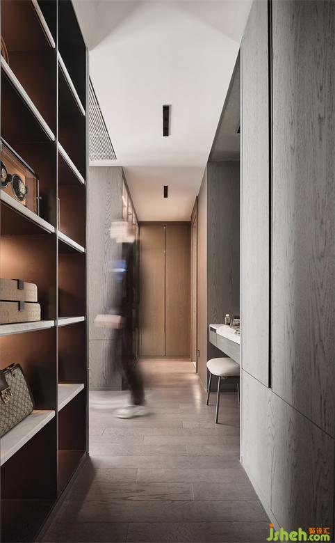 衣帽間與臥室的貫通,是空間延伸后的大氣磅礴,也搭建起了兩個空間互動的更多可能性。