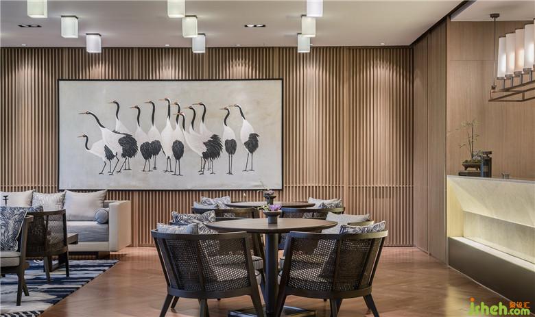 根據(jù)地理位置特點(diǎn),將室外東方園林的設(shè)計(jì)元素融入室內(nèi)空間,運(yùn)用東方園林的小橋、流水、荷葉、梅花樹等景致加入空間設(shè)計(jì),形成室內(nèi)造景,表達(dá)對(duì)自然文化景觀的致敬與傳承。