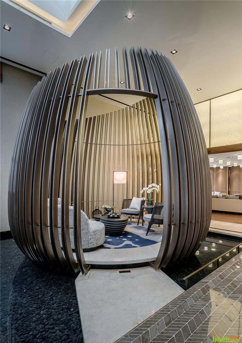 項(xiàng)目緊鄰西安曲江遺址公園,依托周邊豐富的旅游文化資源和人文傳統(tǒng),恢復(fù)性再造曲江南湖、曲江流飲、漢武泉、宜春苑、鳳凰池等歷史文化景觀,再現(xiàn)曲江地區(qū)“青林重復(fù),綠水彌漫”的山水人文格局,構(gòu)建集生態(tài)環(huán)境重建、觀光休閑娛樂、現(xiàn)代商務(wù)會(huì)展等功能為一體的綜合性城市生態(tài)和娛樂休閑區(qū)。設(shè)計(jì)師將“東方園林”的概念植入設(shè)計(jì),運(yùn)用自然景觀的設(shè)計(jì)元素,將室外的園林景觀融入室內(nèi)設(shè)計(jì)。