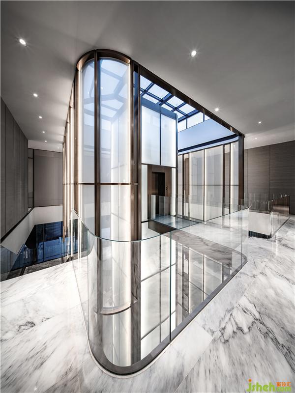 將整個建筑的設(shè)計理念統(tǒng)籌于中庭空間之下,形成統(tǒng)一、簡潔的建筑形象。