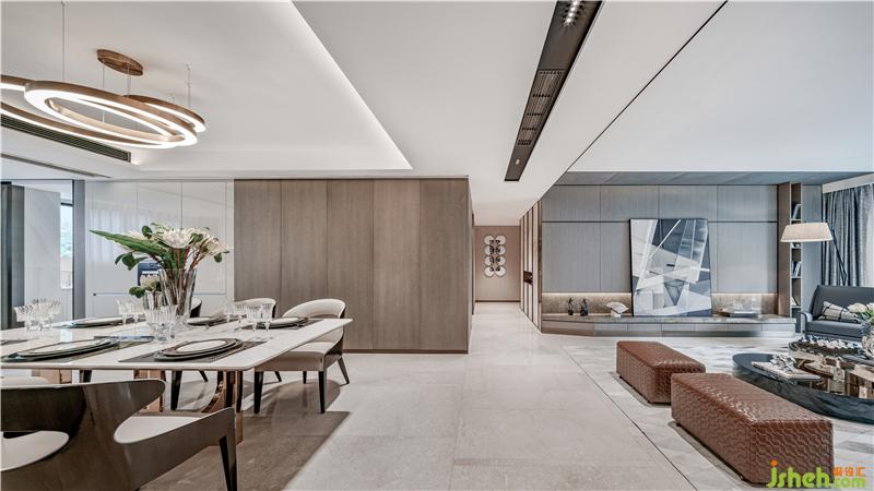 整個空間擯棄紛繁復(fù)雜的裝飾造型,以大面積的米色勾勒出空間墻面的底色,樣板房設(shè)計配以素雅的米色石材地面,再輔以深棕色作點(diǎn)綴,在柔和的自然光線下營造出靜謐閑適的氣質(zhì)。