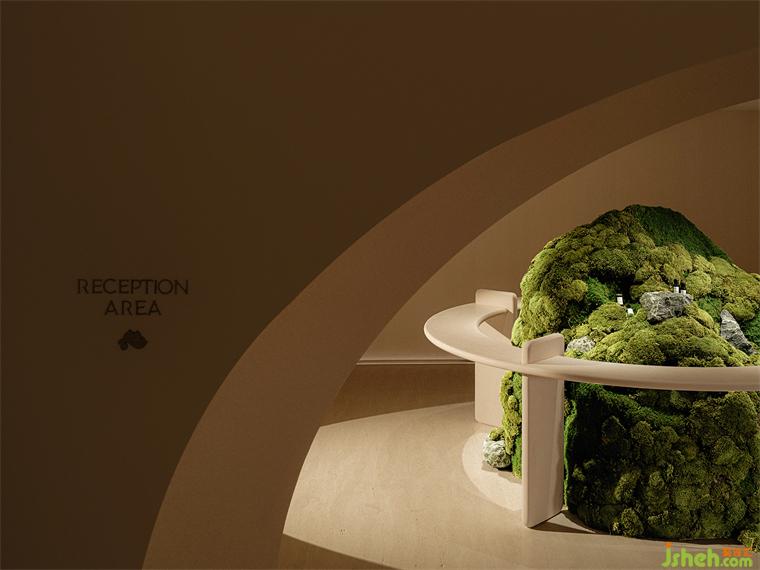 美學(xué)中心設(shè)計不同于其他大開大合的商業(yè)空間,這是一個幾乎密不透風(fēng)的空間外立面,大面積米白色肌理石貼面覆蓋著整面墻,以金色的金屬洞口為原點的墻面上的圓弧線,在增加外立面層次豐富度的同時,以一種更加柔和的方式指引著人們進入空間探尋。