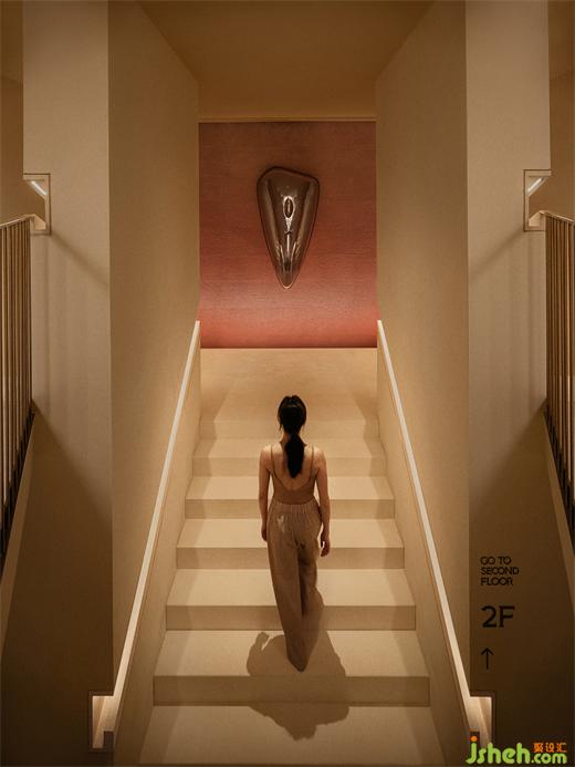 美學(xué)中心設(shè)計如同空間的自然過渡,在燈光設(shè)計方面,熊貓NANA沒有粗暴直接地點亮空間某一處,而是以一種內(nèi)斂的無主燈方式指引著人們的視覺,以線替點,讓燈光作為更整體的形式描繪空間的曼妙身姿。