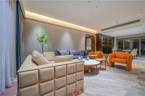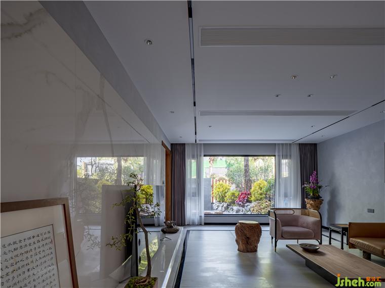 設(shè)計(jì)從不同的空間出發(fā)營(yíng)造出穿透感,以自然為基調(diào)將休閑的概念引入空間,反映人文的心情故事。以自然環(huán)境作為設(shè)計(jì)創(chuàng)意的楔子,設(shè)計(jì)出開闊大氣的空間,反映了居住者本身心靈的開放自在。