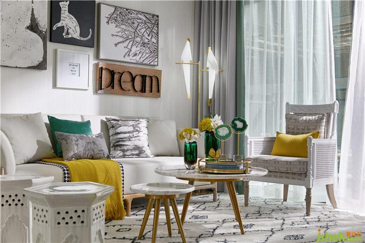 項目是豐泰集團虎門風華豪苑精裝交樓樣板房的軟裝設計。隨著近幾年的發(fā)展及國家環(huán)保要求,之前豪裝樣板房慢慢的退出了設計的舞臺,隨之而來的是交樓標準的裝修樣板房設計。此項目就是一個典型的交樓標準設計的案例,原開發(fā)室內(nèi)設計是標準化的交樓裝修,內(nèi)含地面鋪貼與天花簡單燈槽、墻面白色ICI油漆、櫥柜、衛(wèi)生間等。我們接手這個這個案子之后重新給項目確定軟裝主題設計---新中式混搭。主基調(diào)在遵循原有的白色基調(diào),以淺木色作為家具的主要色調(diào),輔以明快的綠色、檸檬黃色來活躍空間的氣氛,使整個項目呈現(xiàn)出清晰大自然的感覺,花草的芳香彌漫四方······