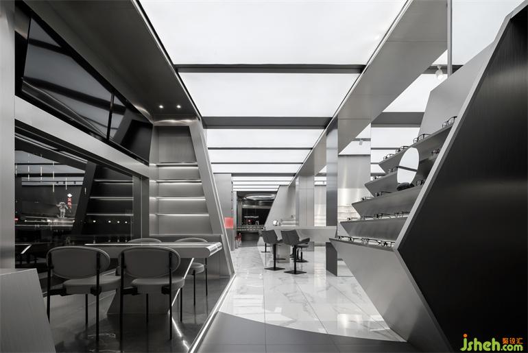 客候區(qū)是開放的空間,區(qū)位分散均勻分布,讓客人隨時可以入座。目光所及均是專業(yè)的領(lǐng)域,總臺可以很好兼顧到“等待者”的需求。展廳設(shè)計內(nèi)外融合的環(huán)境和享受咖啡的小愜意場所。寸土寸金的黃金區(qū)位適當(dāng)?shù)目諘缳x予更多的聯(lián)想空間,砂鋼的空間基調(diào)始終貫穿,皮質(zhì)觸面的長凳在硬派的空間內(nèi)是柔軟的存在,傳達一種安全感的庇護暗示。