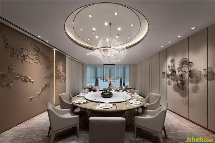 鑒于地處濱海城市深圳的核心區(qū),我們借用古典文學(xué)中曹操一首《觀滄海》為設(shè)計(jì)靈感源泉,結(jié)合騰訊科技企業(yè)愿景為設(shè)計(jì)依托,表達(dá)一種氣勢(shì)磅礴,吞吐日月,包羅星漢的氣概??偛蛷d和諧的劃分為大小包房?jī)蓚€(gè)部分。大包房的設(shè)計(jì)體現(xiàn)了一種可供參考的尊貴高雅的餐飲方式與精神追求。