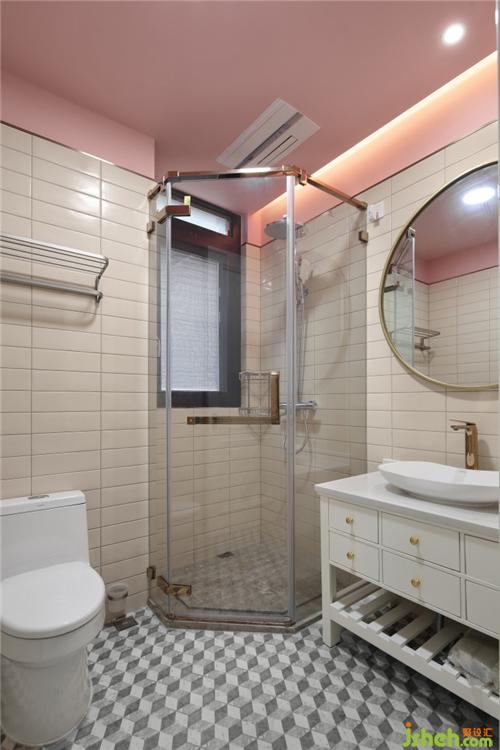 女兒的衛(wèi)生間延用粉色主題 ,頂面粉色搭配地面黑白格子,細(xì)節(jié)以金色不銹鋼收口,浪漫與精致并行;