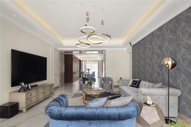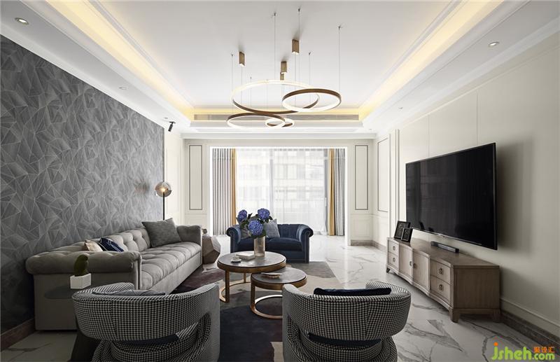 洋洋灑灑的灰色豎紋仿若熱帶雨林中滲透的陽(yáng)光,個(gè)性吊燈點(diǎn)綴其間,灰色石材的磚配上圓形獨(dú)立浴缸,精致高雅;