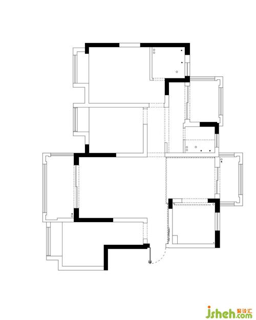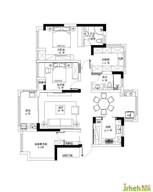 4.拆除西北角的陽臺,取消次衛(wèi)和陽臺門前的走道,整合零碎不必要的空間,改成衣帽間,擴大次衛(wèi)面積。封掉南次臥的門,改在電視背景墻側(cè)面,在南次臥和衣帽間的走道上安裝主臥房門,原本零散的空間就形成了大套間。動線相較之前更加的合理;
