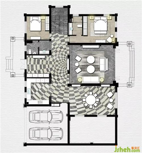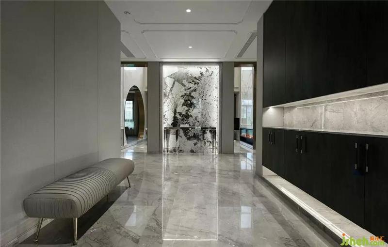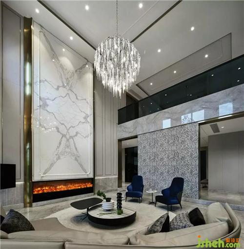 首層作為整個(gè)空間的首要視覺(jué)傳達(dá)接觸點(diǎn),人文理性和情感的比例排布,別墅裝飾運(yùn)用石材、金屬、墻紙等不同材質(zhì),縱向拉伸空間高度,橫向交織功能隔區(qū),與9米高輕盈大氣的中空設(shè)計(jì),在輕質(zhì)、簡(jiǎn)奢的空白處中,衍生出自然的萬(wàn)千形態(tài),烘托舒適自然、時(shí)尚別致的氛圍。