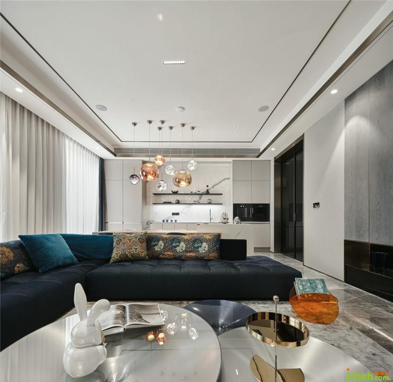 這套面積接近六百方的別墅,業(yè)主在跟設計師溝通的時候,提出一個需求要增加空間的互動感,所以別墅裝飾設計師打破了原有的餐廳結(jié)構,設計了一個社交廚房,增強客餐廳的交互性。