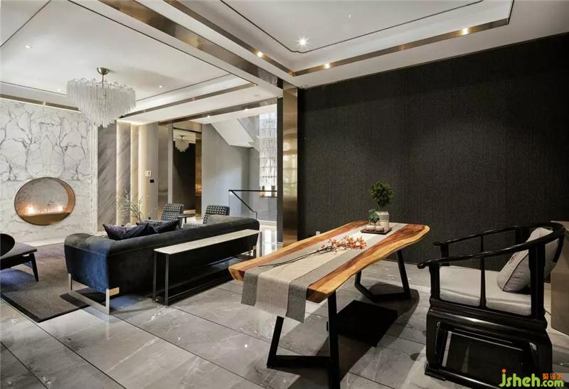 會(huì)客廳呈開放式設(shè)計(jì),簡(jiǎn)約線條勾勒出場(chǎng)域的大氣之感,電視墻燈光的層疊變化,別墅裝飾讓大理石的質(zhì)感在低調(diào)中透出精致與奢華,側(cè)面透過玻璃門視覺延伸到庭院,光影的渲染又給空間注入了力量和生命靈性。